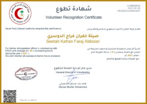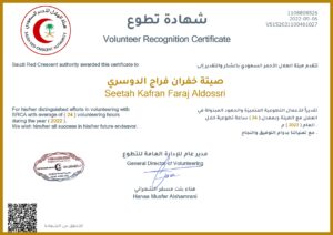 شهادة العمل التطوعي من الهلال الأحمر السعودي 2022م
